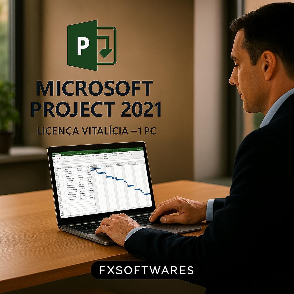 O Microsoft Project 2021 é a versão mais recente com licença permanente da Microsoft, desenvolvida para profissionais que precisam de controle avançado sobre cronogramas, recursos, equipes e custos.